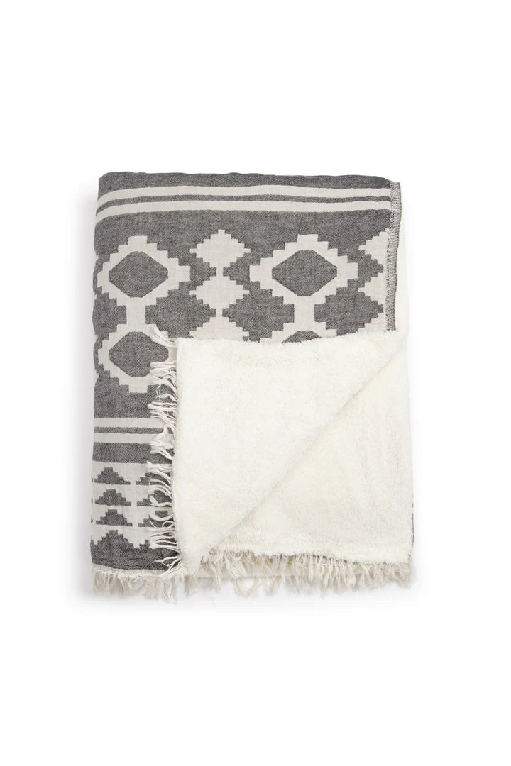 The Beach fleece throw combines the perfect blend of softness and style with our signature Turkish cotton, cozy fleece lining, and playful eyelash fringe. Whether you’re curling up in the living room, cozying up in your bed, or enjoying the outdoors, this versatile throw has you covered with warmth and charm.