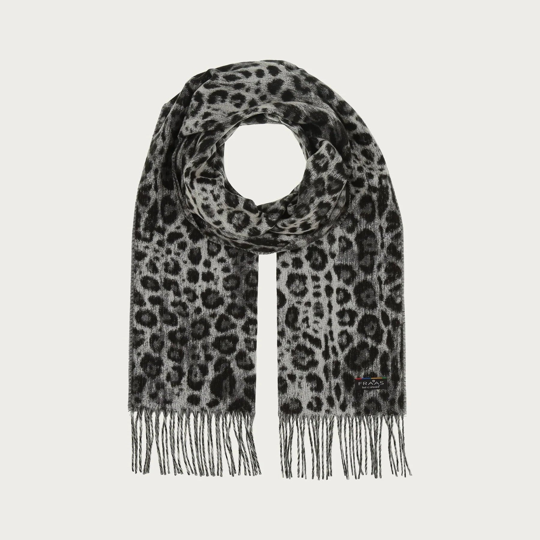Chic all-rounder for the winter: The FRAAS Cashmink scarf is a real eye-catcher with its leopard design and long fringes. The classy look of the scarf can be combined very well with any fashionable outfit - from a business look to a women's coat. An elegant accessory. The 35 x 200 cm woven scarf is made from the best FRAAS Cashmink: gentle on the skin, warm and soft.