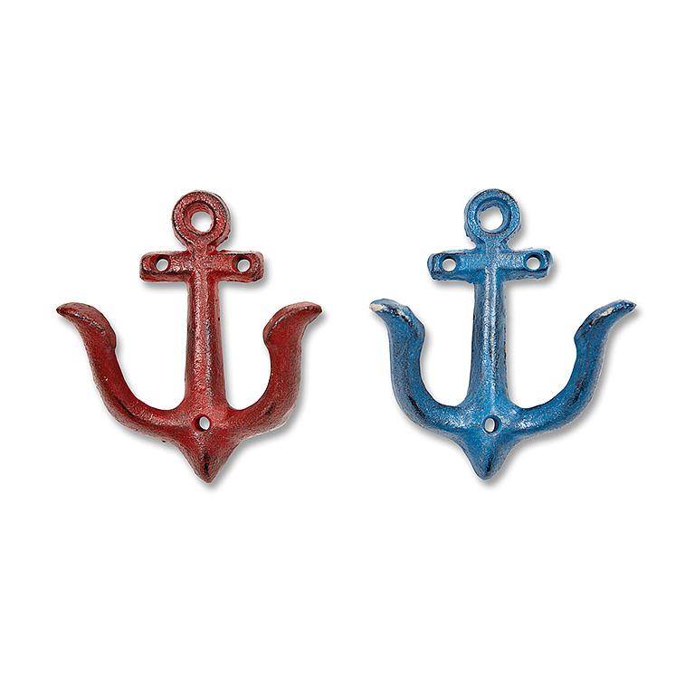 Nautical buffs will love these small anchor hooks from our cast iron collection. These blue and red hooks are both handsome and handy in foyers, hallways, guest rooms and more.