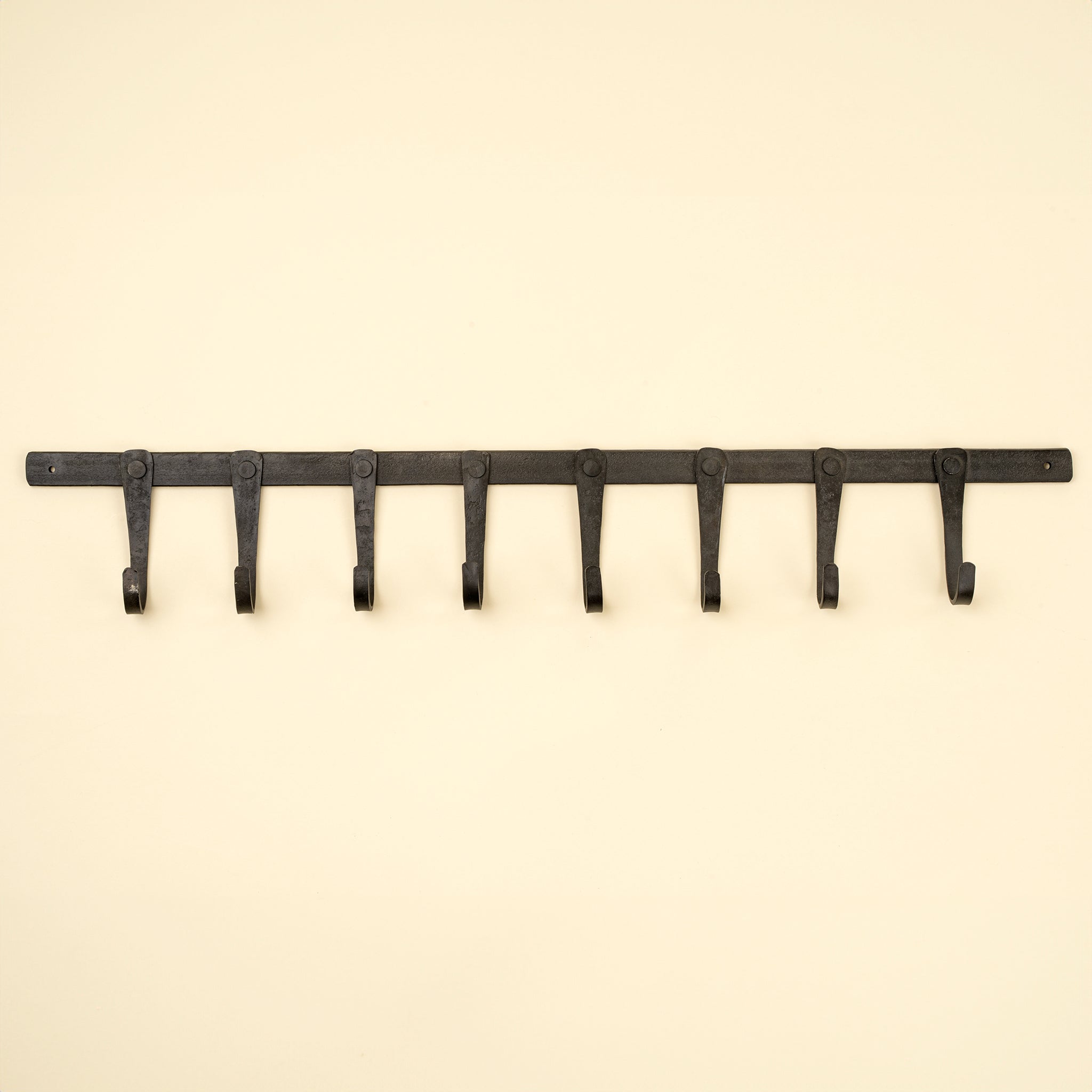 Bring order and artistry to your home with the Forged Iron Wall Hook. Handcrafted in Moradabad, India, a city renowned for its expert metalwork, This eight-hook wall rack blends function and form with effortless style. The dark iron finish and linear design offer a striking accent decor piece that works beautifully in entryways, mudrooms, or utility spaces.
