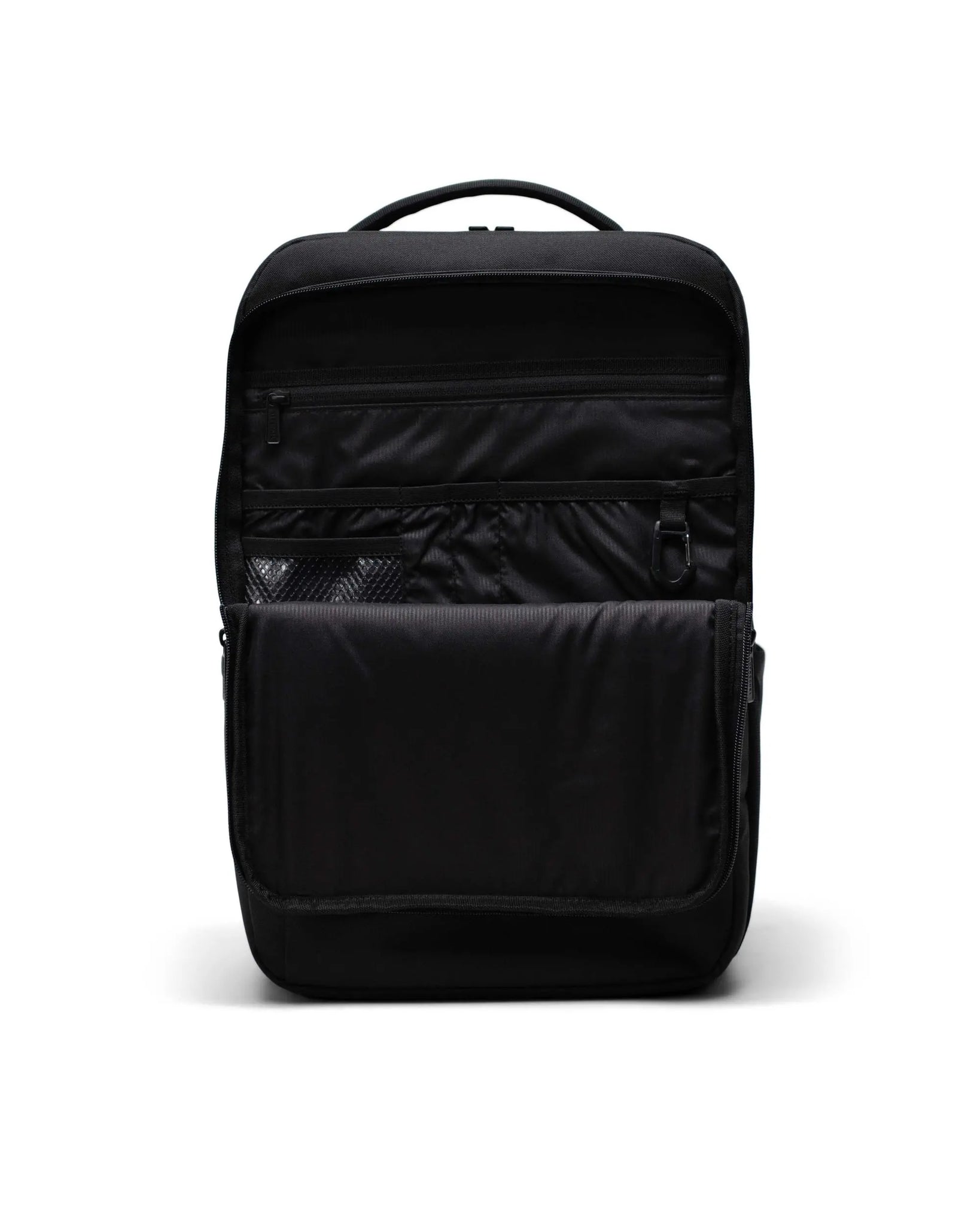 - Front compartment with organizers and key clip