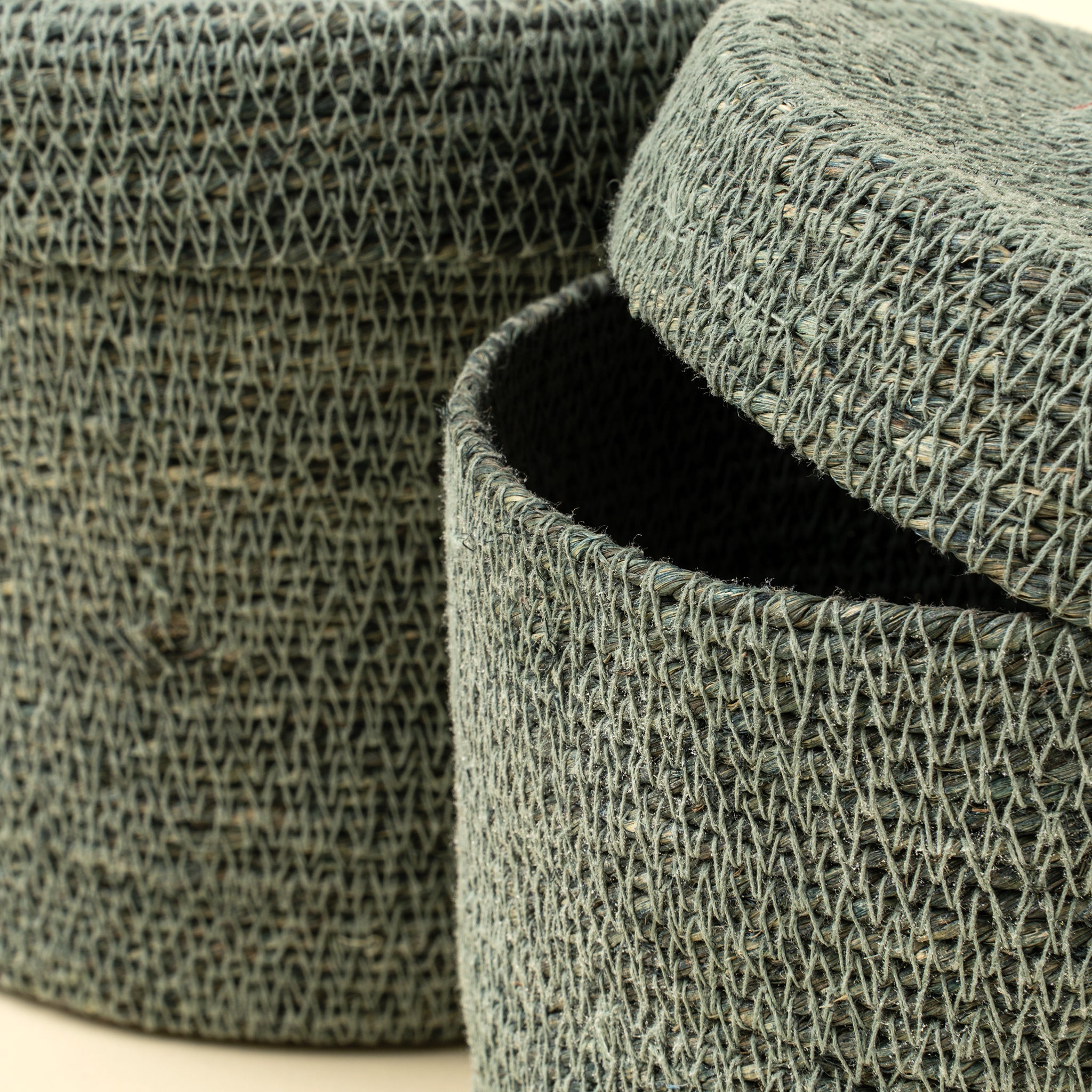 The lidded design makes them ideal for stashing away odds and ends while keeping surfaces looking beautifully curated. The soft blue tone adds a pop of subtle colour, blending easily into neutral or coastal palettes.