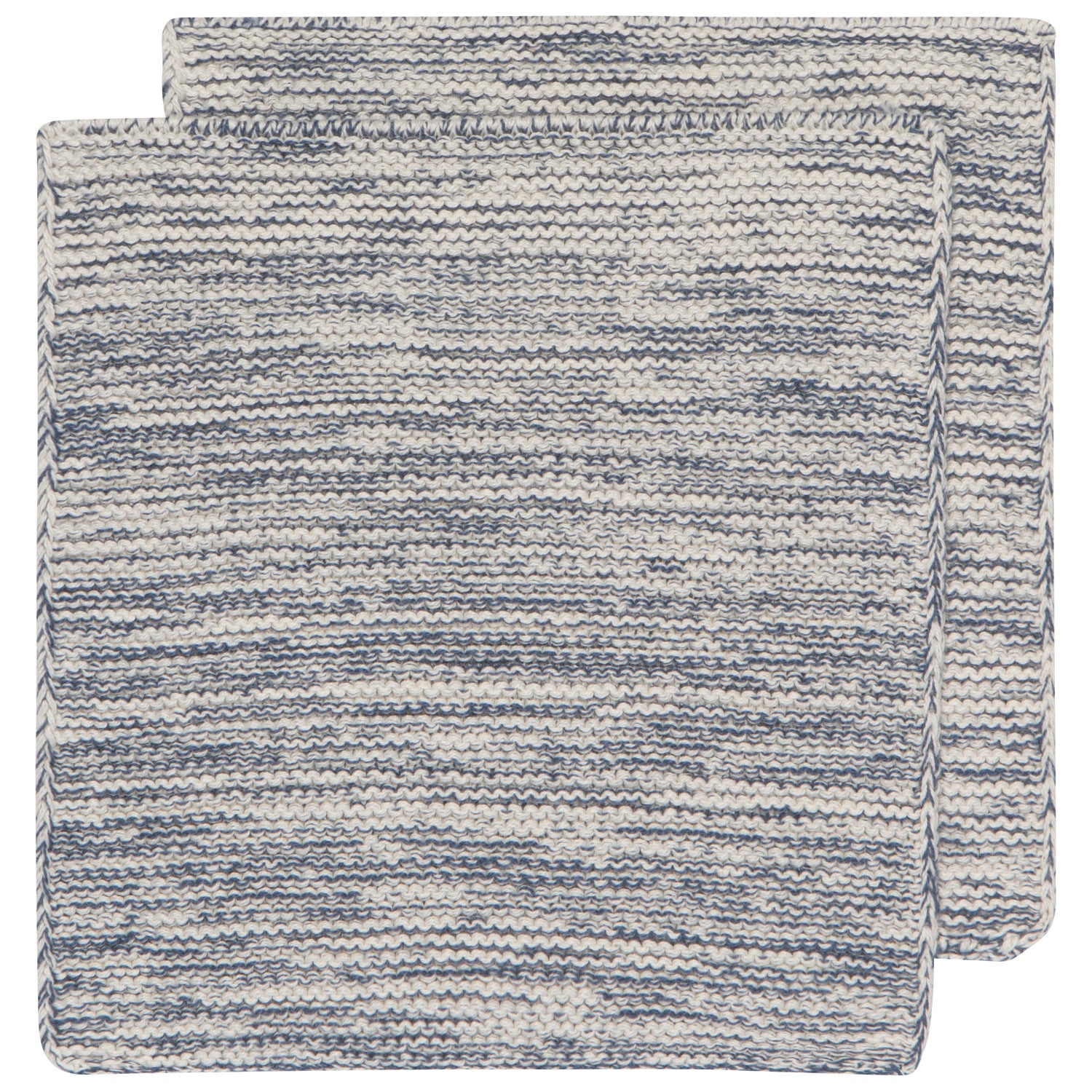 Sets of two dishcloths are soft on the hands yet tough on dirty dishes. Knit by hand with heathered cotton yarns. Part of the Medley collection of colour-coordinated kitchen and table linens from Danica Heirloom.