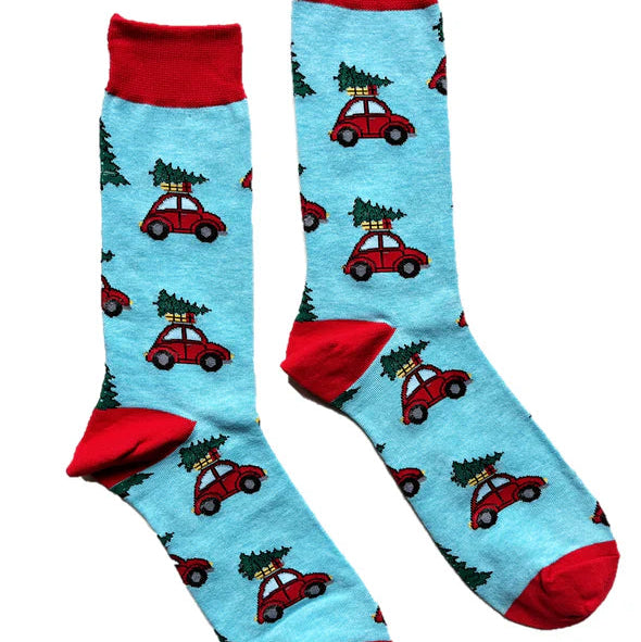 The holidays are always a fun time. Make your holidays more joyous with these awesome funky socks featuring the famous beetle carrying a Christmas Tree.